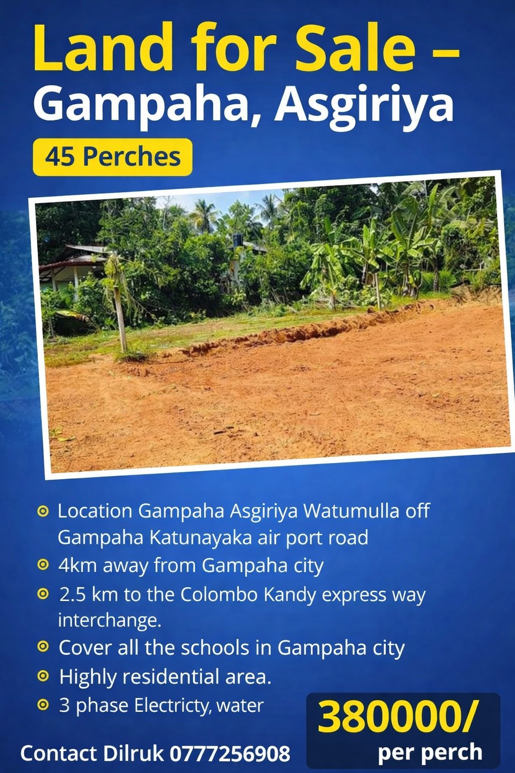 පර්චසයකට Rs.  380,000.00