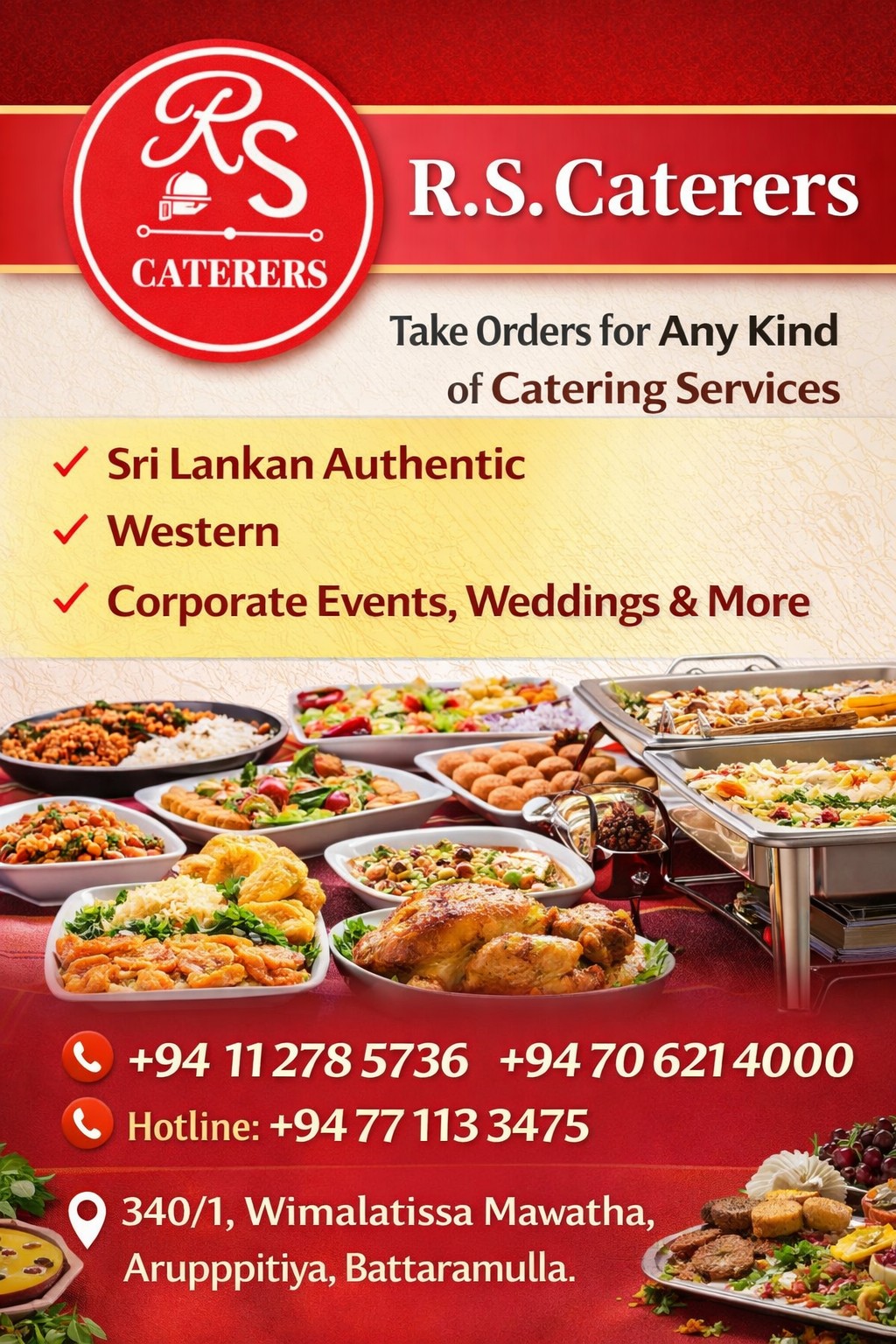 Delicious Catering for Every Occasion 🍽️ We provide high-quality Sri Lankan, Western, and mixed cuisine catering for all types of events.From weddings and conferences to private parties and corporate functions, our experienced team ensures great tast...