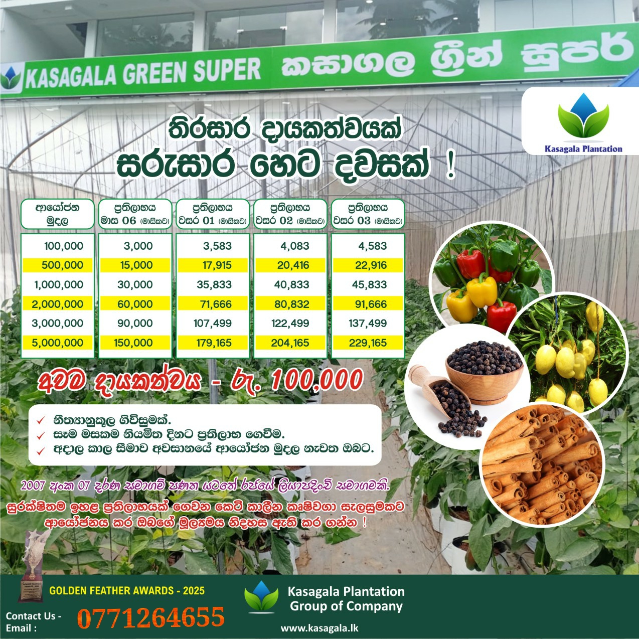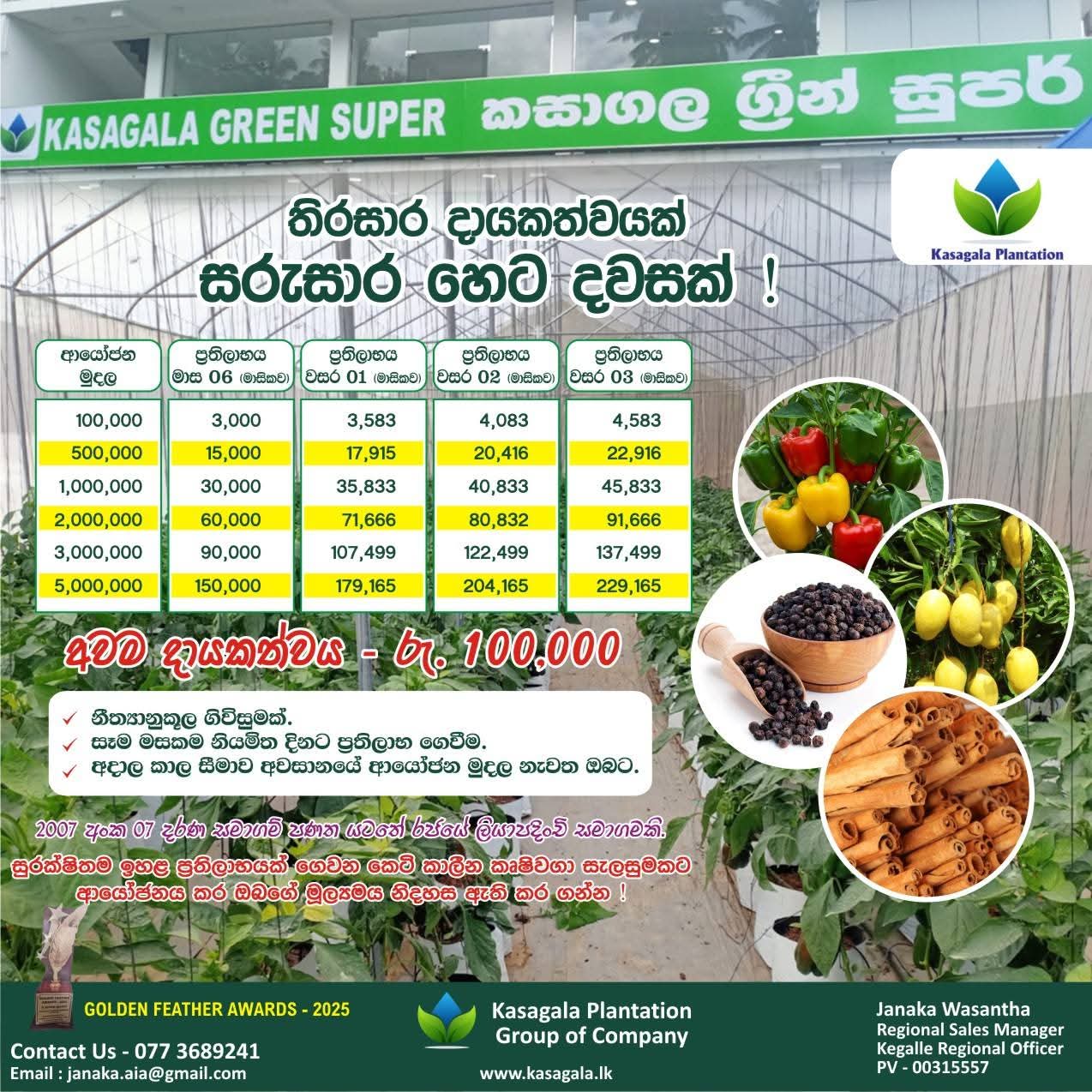 ඔබ වෙනුවෙන් අප වගා කොට ඔබේ අස්වැන්න මාසිකව ඔබේ අතට