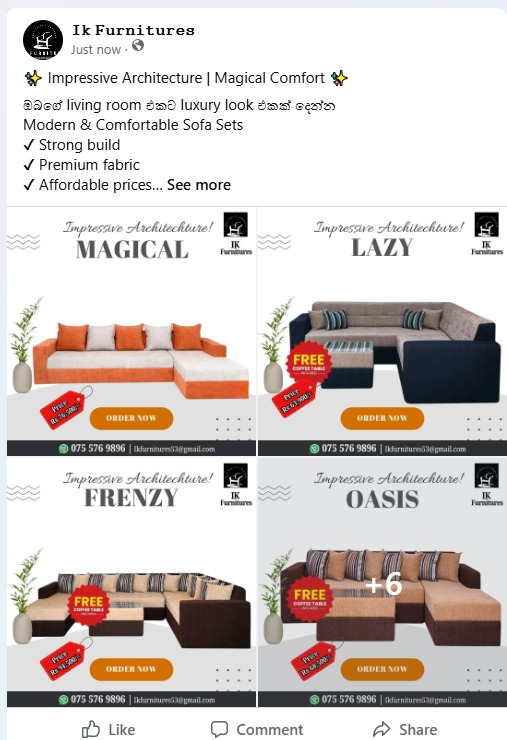 Impressive Architecture | Magical Comfort ඔබගේ living room එකට luxury look එකක් දෙන්න Modern & Comfortable Sofa Sets Strong build Premium fabric Affordable prices Order now – Limited stocks available! WhatsApp / Call: 075 576 9896 #IKFurnitures #Sofa...