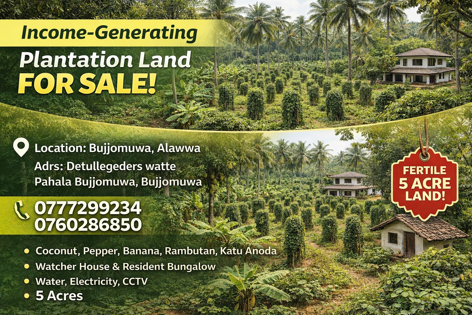 • Land Size (Perches/ Acres) : 5 Acres