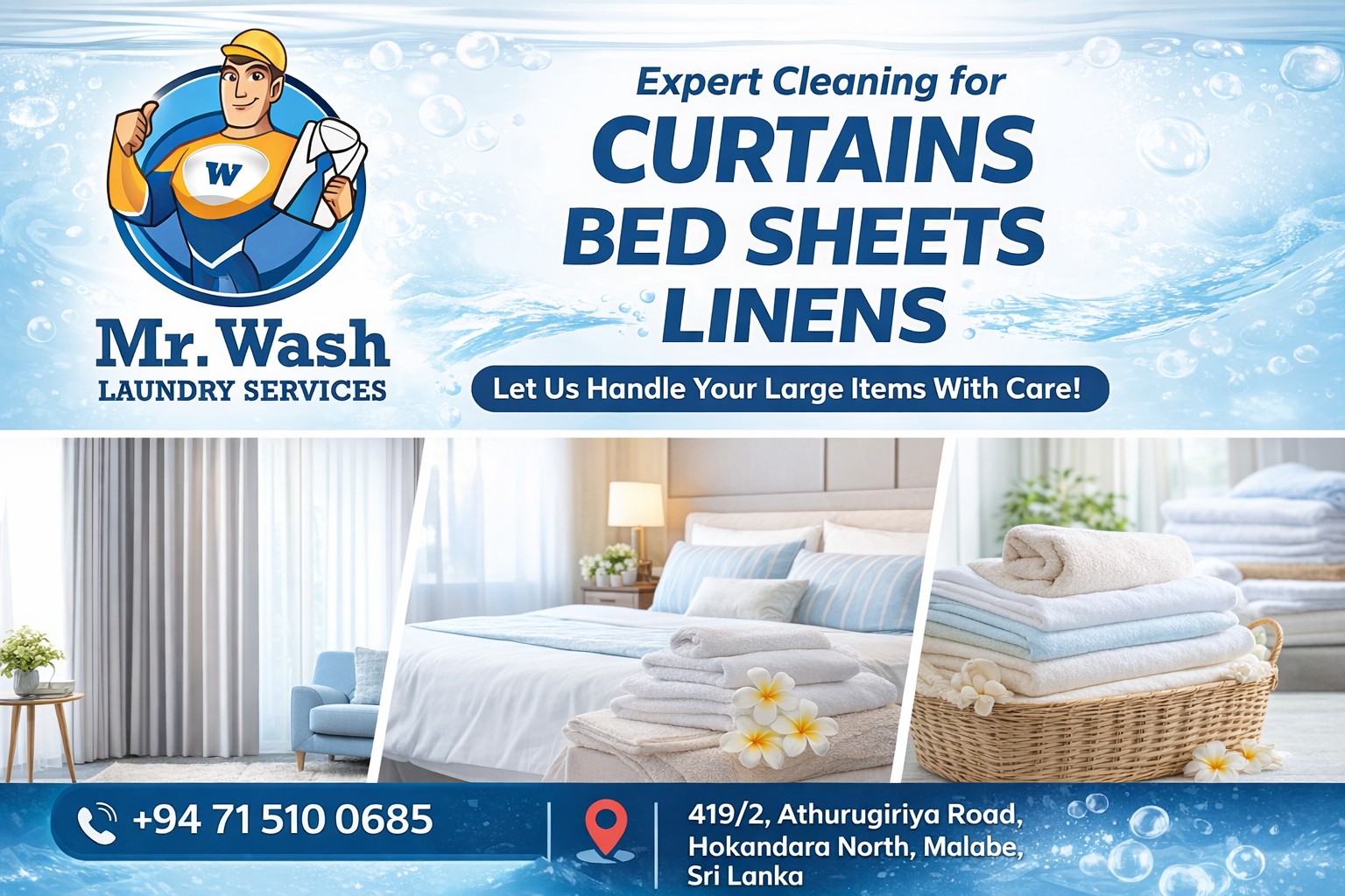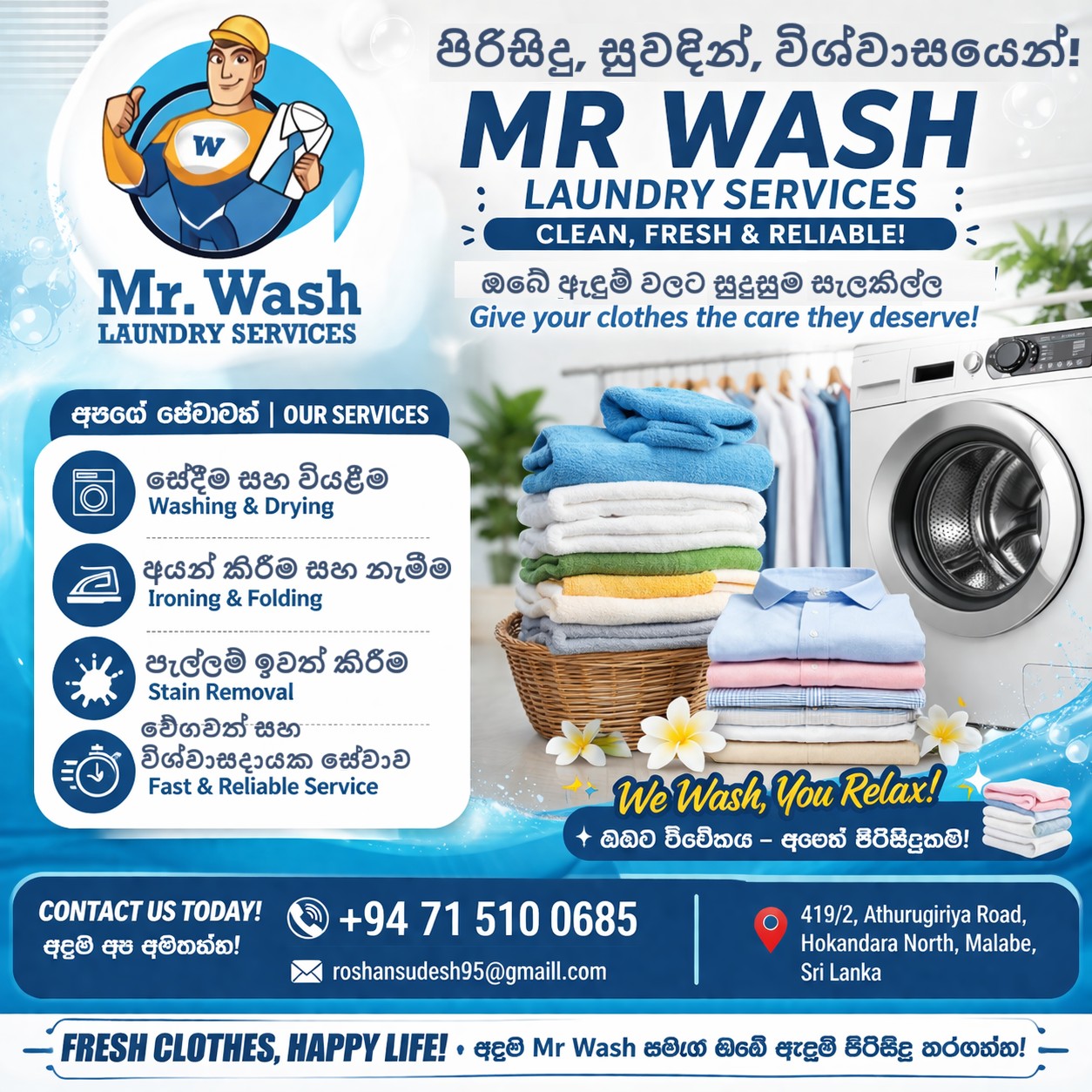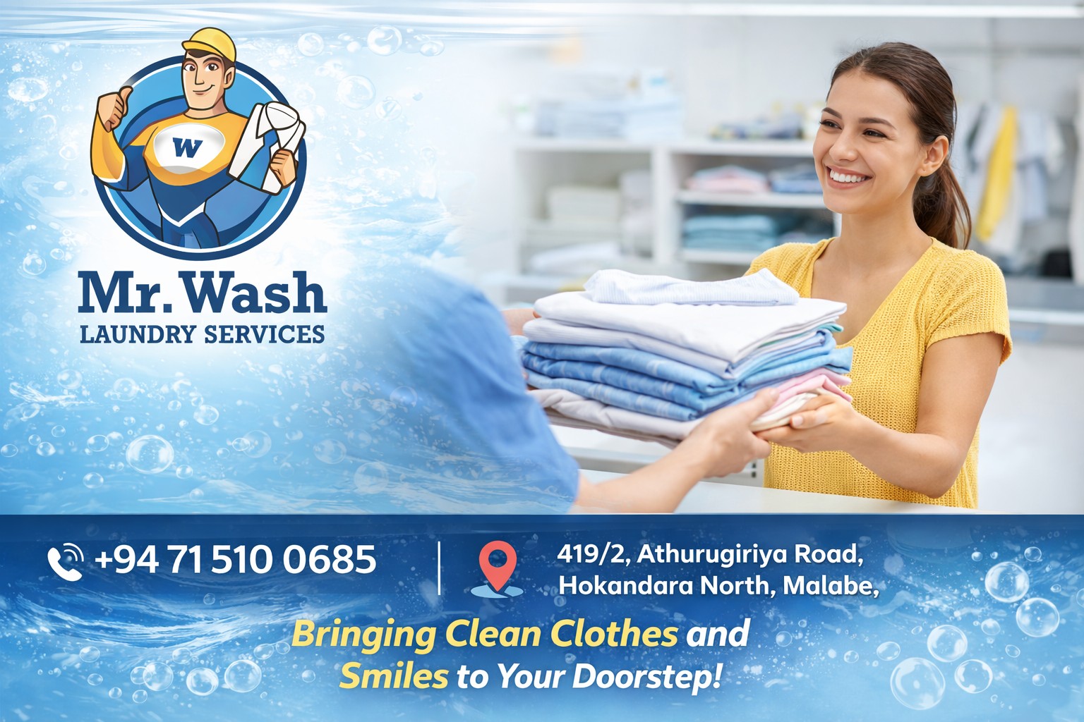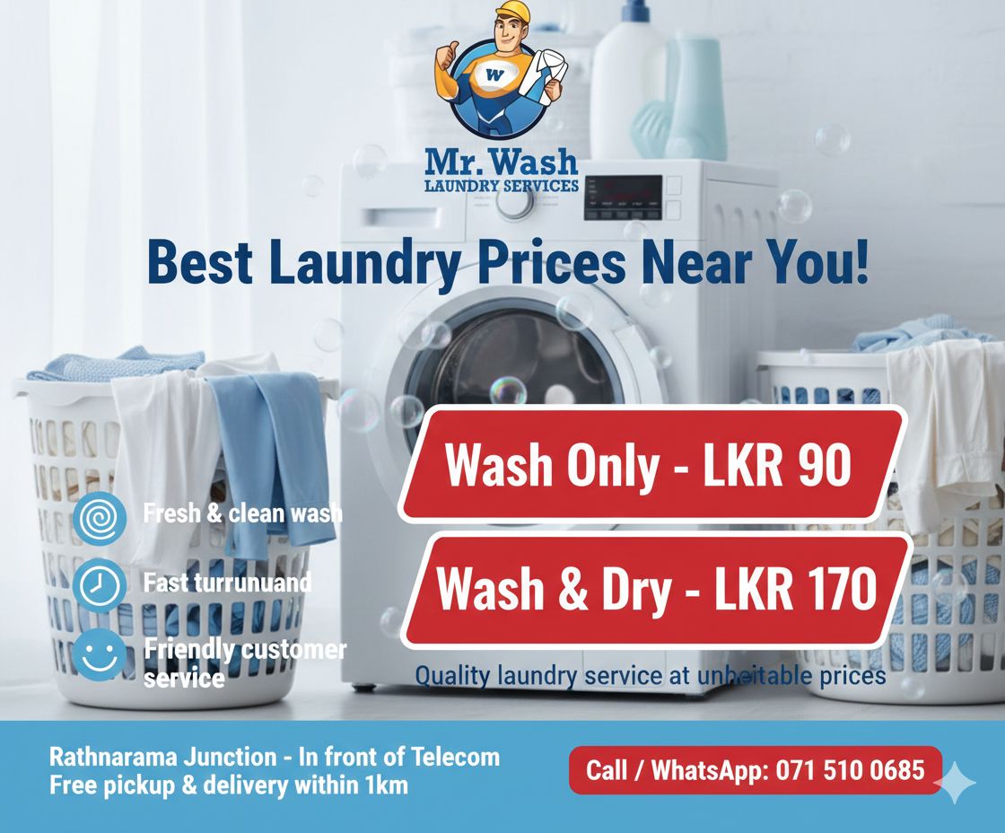 Mr Wash ලොන්ඩ්‍රී සේවාව – පිරිසිදු, සුවඳින්, විශ්වාසයෙන්!