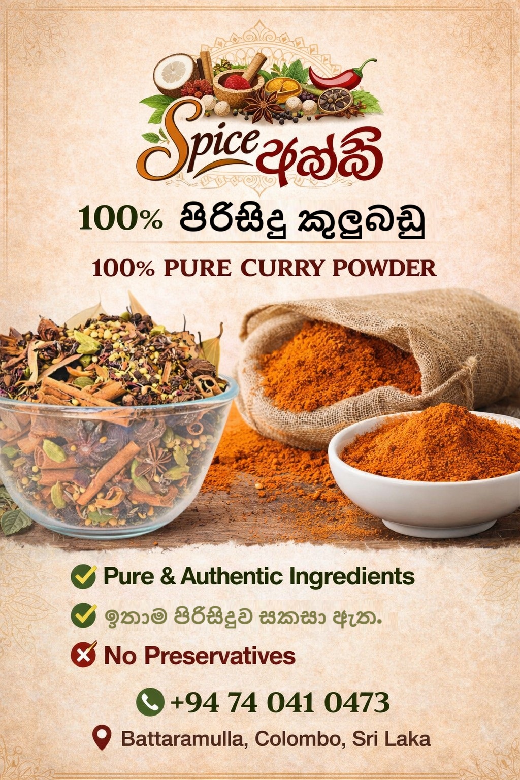 🌿Spice අක්කි | Spice Akki 🌿 ✨ 100% පිරිසිදු, උසස් තත්ත්වයේ කුලුබඩු ඔබට! ✨ We bring you the true taste of nature with freshly prepared, pure and high-quality spices made with care and tradition. 🌶️🧄 🍛 Our Products | අපගේ නිෂ්පාදන: ✔️100% පිරිසිදු උසස්...