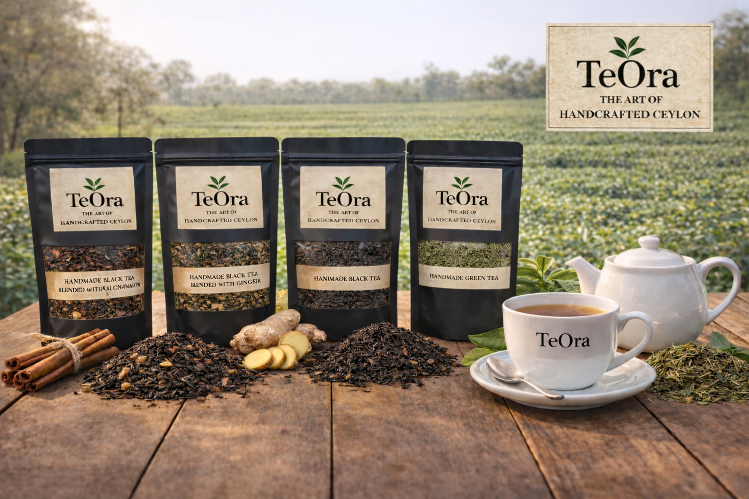 We craft Black Tea, Green Tea, Cinnamon Black Tea, and Ginger Black Tea with meticulous care, preserving the tea’s natural aroma, rich flavor, and authentic character. Our teas are presented in a whole-leaf (leafy) form, allowing tea lovers to enjoy a fuller body and superior taste retention, as the leaves release their flavors gradually and naturally. Free from artificial additives and made with deep respect for nature, TeOra delivers a pure and refined Ceylon tea experience in every cup.