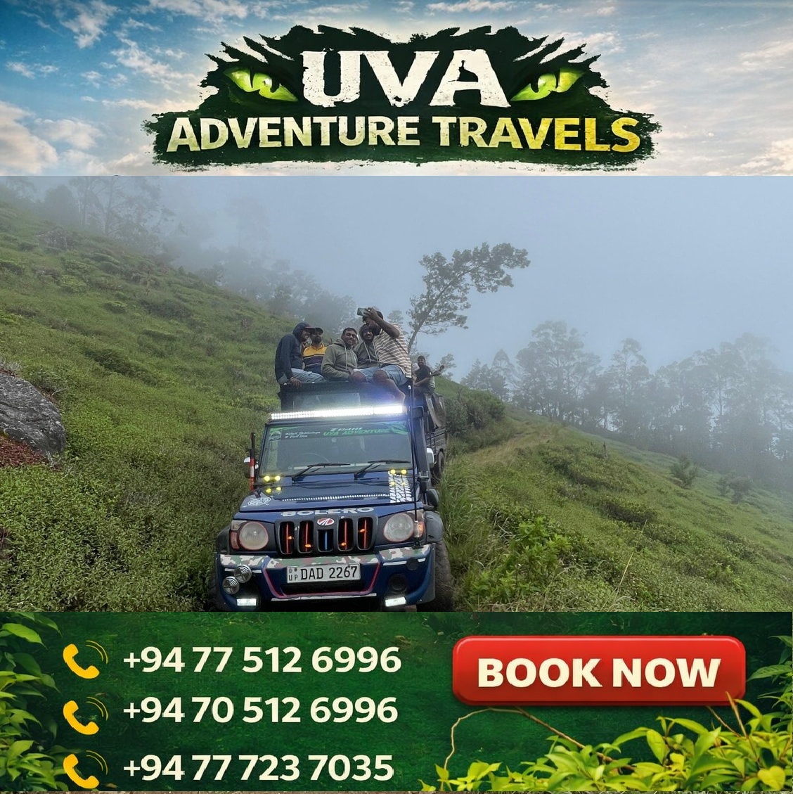 Get ready to explore the beauty of Uva like never before! Whether you're traveling with friends, family, or a big group, we offer the perfect mix of adventure, comfort, and unforgettable experiences 💚